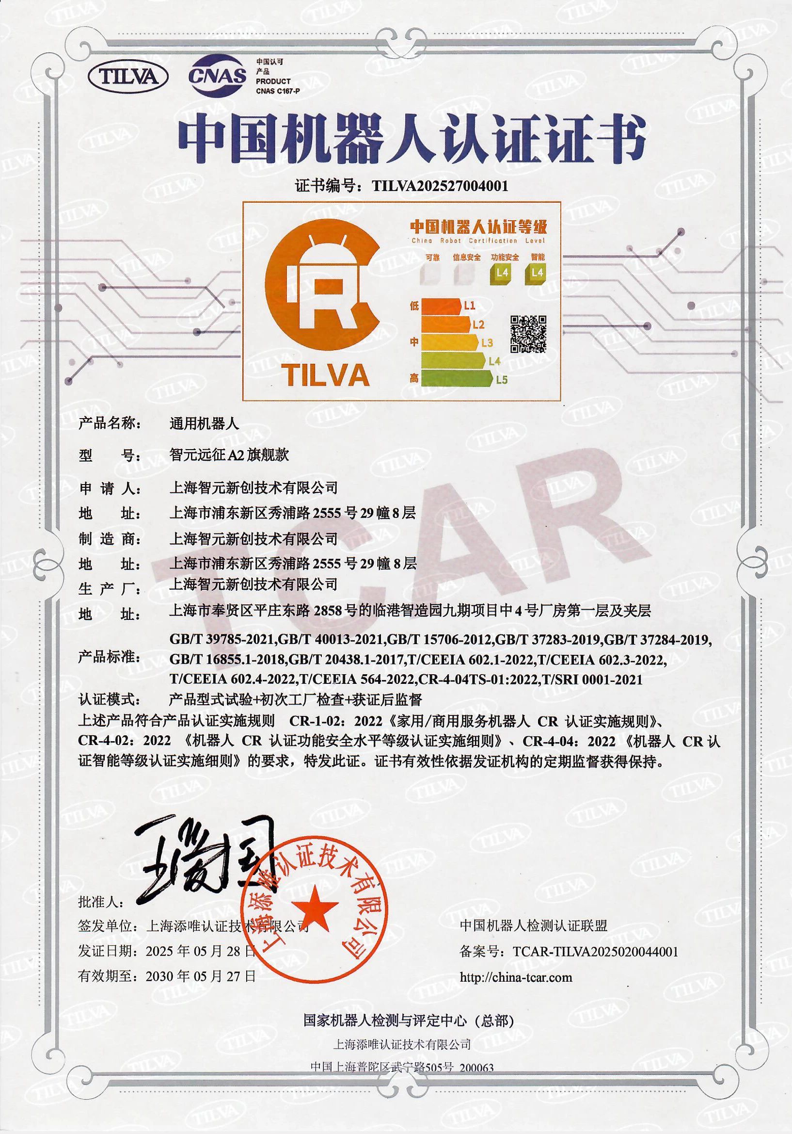 全球首张 | 智元机器人荣获人形机器人CR认证“001”证书
