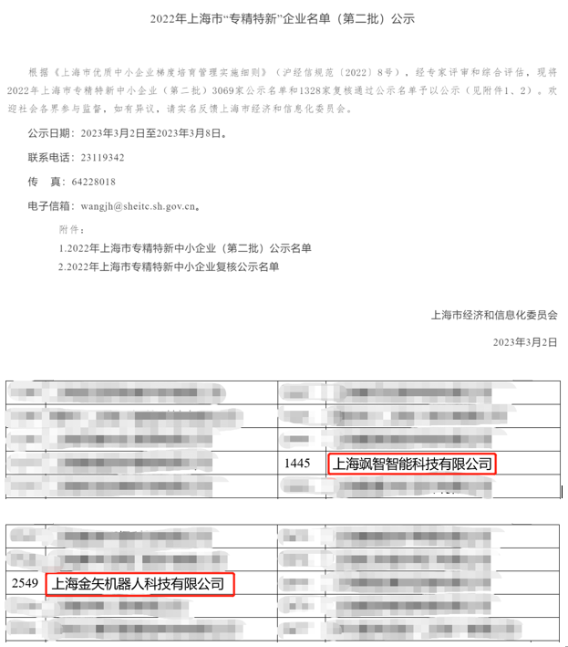 机器人平台3家孵化企业获评上海市专精特新企业荣誉称号,其中1家入选国家级小巨人企业!