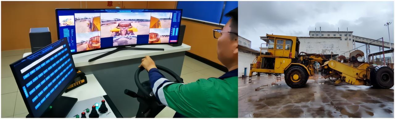 目前为中冶宝钢搭建完成一套炉下渣车远程驾驶系统。基于5G网络,搭建远程驾驶智能座舱,舱端可实现多视角环视影像,预警提醒,可实现一个智能座舱跟踪接管5辆车,人机切换操作智能协同,安全运输。